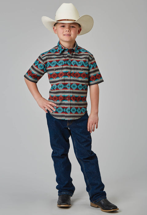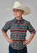Boy's Short Sleeve Shirt * Horizontal Print On 100% Cotton Poplin * 1 Pt Curved Front & Back Yokes * 1 Pt Curved Pockets & Flaps * Denim Inside Trim * Opaque Snap Front * Garment Washed