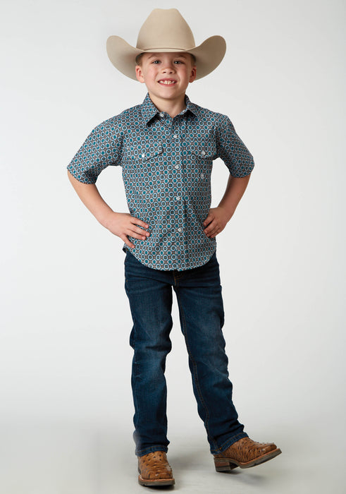 Boys Short Sleeve Western Shirt * Snap Front * Spread Collar * 1 Point Back Yoke * 2 One Point Pockets & Flaps * Roper "R" Embroidery