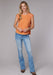 Women's Super-Cute Drop Shoulder Top In Orange Cotton Slub Jersey * Embroidered Drop Shoulder Inserts * Oversized Crew Neck * Curved Hem