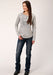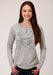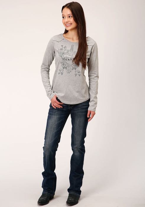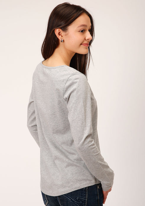 Women's Grey Jersey Knit Tee * Long Sleeve * Front Yokes * Screen Printed Decoration