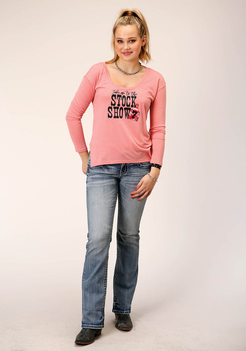Women's Light Pink Jersey Knit Tee * Crew Neck * Short Sleeve * Hi-Low Hem * Screen Printed Decoration
