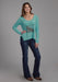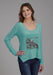 Women's Turquoise Jersey Knit Long Sleeve Tee * Wide Boatneck * High/Low Hemline * Screen Printed Decoration