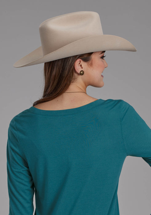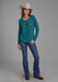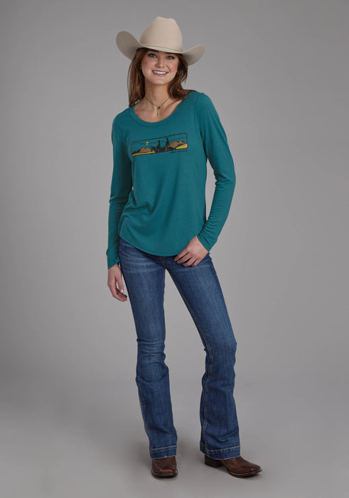 Women's Teal Jersey Knit Long Sleeve Tee * Crew Neck * Screen Printed Decoration