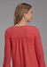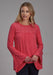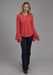 Women's Pretty Peasant Style Knit Top In Red Cotton Slub Knit Jersey * Woven Eyelet Straight Front Yoke * Sleeves With Feminine Bell Ruffle Cuffs