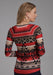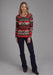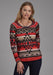 Women's Wonderful Sweater Jersey Top With Raglan Sleeves * Flattering Scoop Neckline * Beautiful All Over Aztec Sublimation Print In Reds, Blacks, Creams And Tans