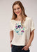 Women's White Jersey Knit S/S Tee * Scoop Neck * Gathered Sleeve Details * Embroidery Embellishment * Garment Washed For Softness