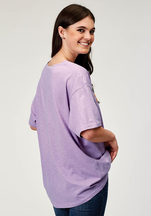Women's Lilac Slub Jersey Knit Boyfriend Tee * Crew Neck * Short Sleeve * Screen Printed Decoration