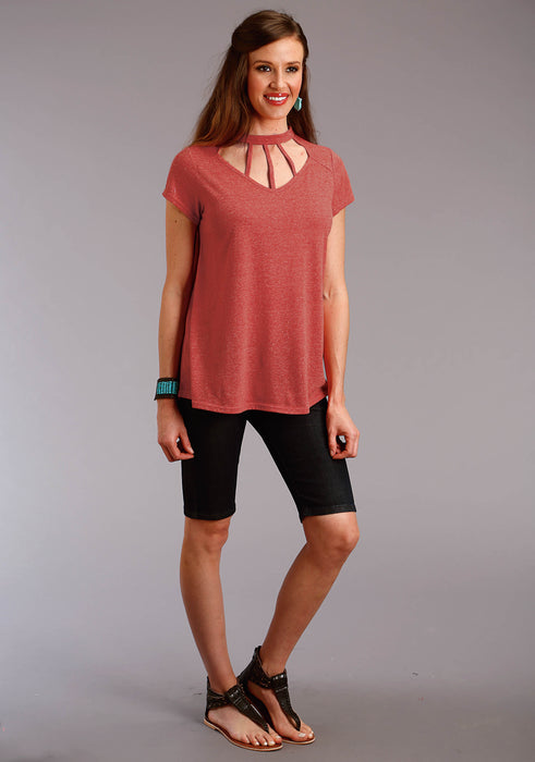Fabulous Mock Neck Top With Cutout Neckline * Swing Silhouette * Short Sleeves * Soft Heather Jersey