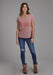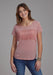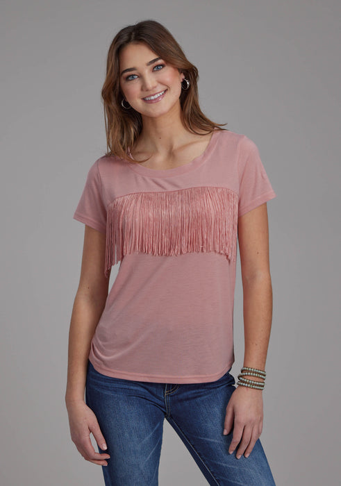 Women's Pink Jersey Knit Tee * Crew Neck * Short Sleeve * Front Yoke With Fringe Decoration