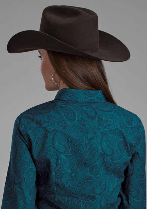 Women's Long Sleeve Western Style Shirt * Printed 100% Cotton Poplin * 1 Pt Curved F/B Yokes * 1 Pt Curved Pocket & Flaps * Contrast Inside Trim * 3 Snap Cuff * Opaque Snap Front * F/B Darts * Garment Washed