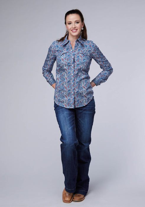 Women's Long Sleeve Western Shirt * Snap Front * Long and Lean Cut * 1 Point Curved Front And Back Yokes * 1 Pt Pkts/Flaps * 2 Snap Cuff * Bust Darts * Roper "R" Embroidery