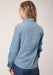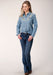 Women's Lt Blue Denim Long Sleeve Blouse * Embroidery Decoration On Front * Button Closure * Garment Washed