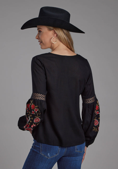 Women's Roper Black Rayon Long Sleeve Western Blouse