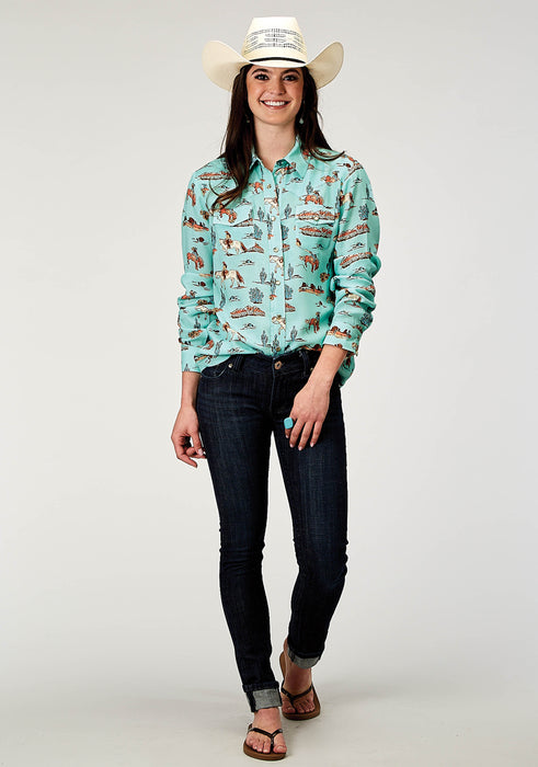 Women's Desert Toile Printed Rayon Western Blouse * Long Sleeve * Front And Back Yokes * 1 Point Pockets & Flaps * Snap Closure * Garment Washed For Softness