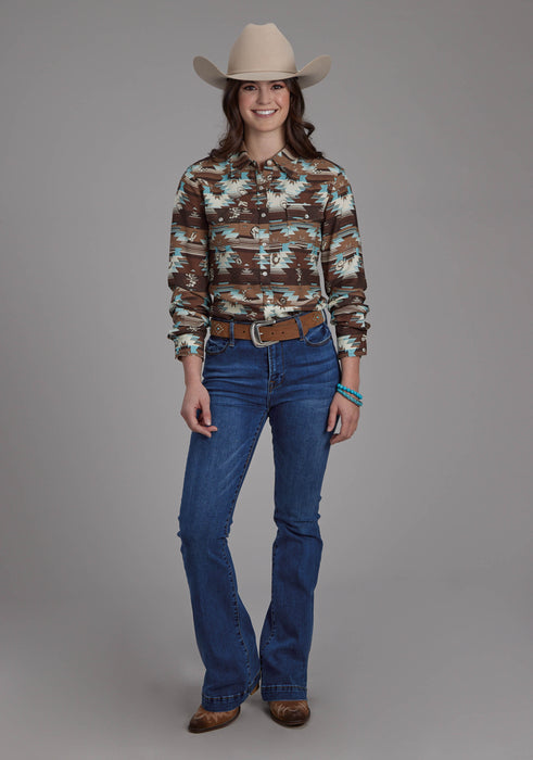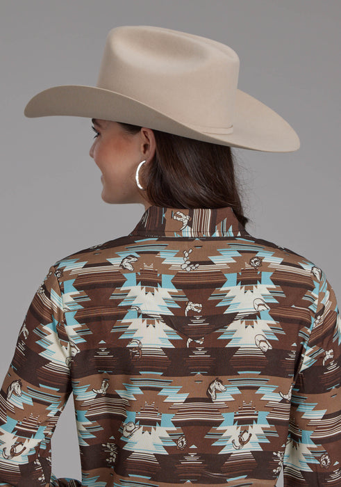 Women's Icon Aztec Printed Rayon Western Blouse * Long Sleeves * 1 Pt Front And Back Yokes * 1 Point Pockets & Flaps * Snap Closure * Garment Washed For Softness