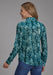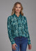 Women's Lovely Western Shirt In Teal Feather Print Poly Georgette * Sleeves Can Be Rolled And Fastened With Tab And Button * Akoya Shell Button Closure