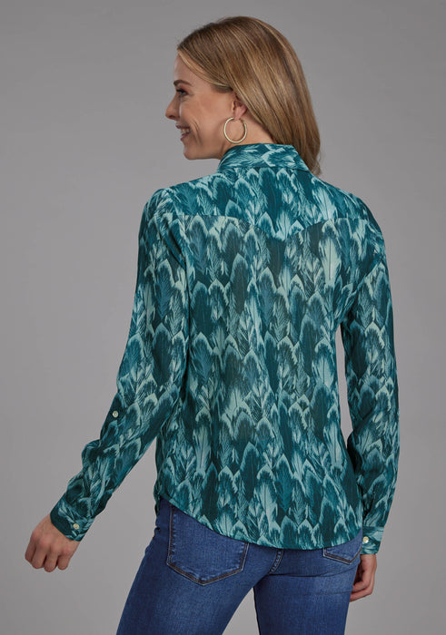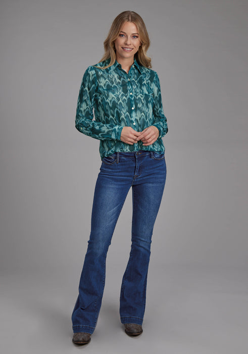 Women's Roper Teal Feather Print Long Sleeve Western Shirt