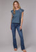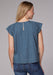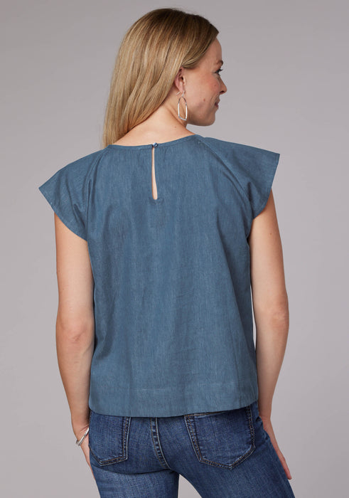 Women's Short Sleeve Peasant Blouse Medium Blue Cotton Denim * Flutter Raglan Sleeves * Embroidered