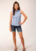 Women's Sleeveless Western Shirt * Button Front * 1 Pt Back Yoke * 2 One Point Flap Pockets * Front & Back Darts * Bust Darts * Roper "R" Embroidery