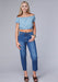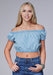 Women's Lt Blue Denim Off-Shoulder Crop Top * Short Sleeve * Elastic At Neckline, Cuff And Hem * Garment Washed For Softness