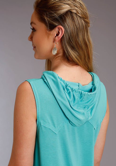 Turquoise Poly Rayon Jersey T-Shirt Dress With Hood * Front Oversized Smile Pockets * 2 Point Back Yoke With Raw Edge * Above The Knee Length