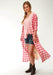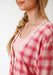 Pink Cotton Plaid L/S Shirt Dress * Open V Neck * Crochet Trim * Straight Back Yoke * Contrasting Fabric Back Panel * Pearl Dress Buttons * Garment Washed For Softness