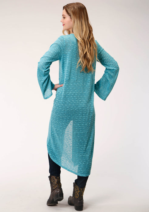 Women's Dark Teal Sweater Knit Long Length Cardigan * Long Sleeve * Front Tie Accent * Garment Washed For Softness