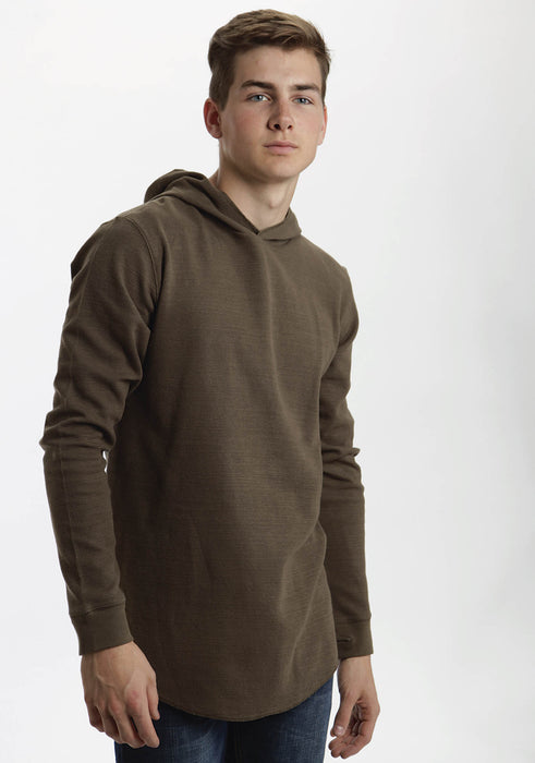 Men's Solid Brown Long Sleeve Hooded Shirt
