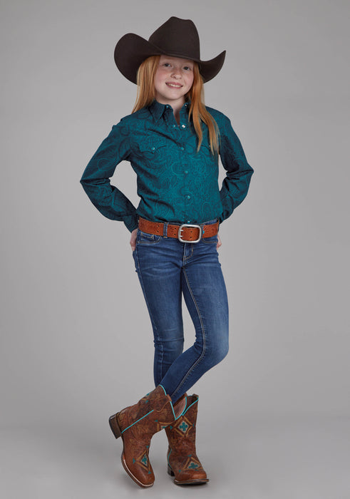Girl's Long Sleeve Western Style Shirt * Printed 100% Cotton Poplin * 1 Pt Curved F/B Yokes * 1 Pt Curved Pocket & Flaps * Contrast Inside Trim * 1 Snap Cuff * Opaque Snap Front * Garment Washed
