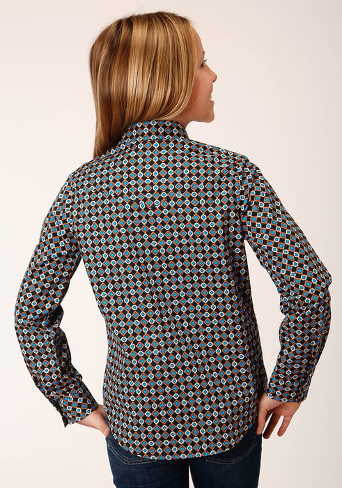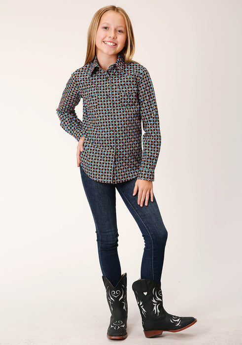 Girl's LS Shirt * Printed 100% Cotton Poplin * 1 Pt Curved Frt Yokes * 1 Pt Curved Bk Yoke * Shaped Pckts & Flaps * Contrast Inside Trim * 1 Snap Cuff * Black Pearl Snap Front * Garment Washed