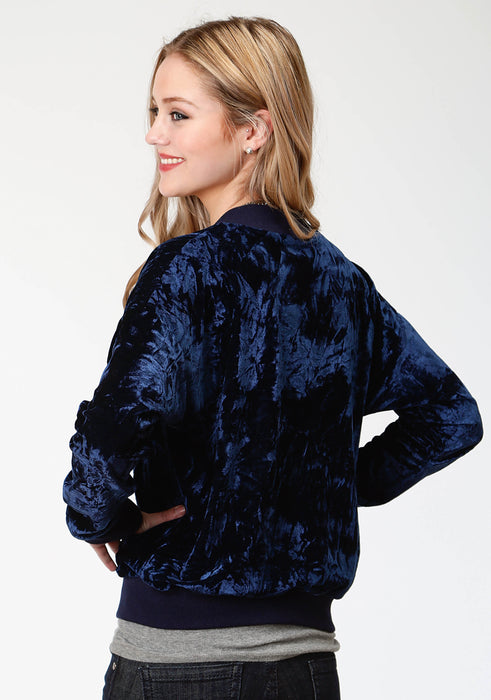 Navy Sweater Bomber Jacket * Matching Rib Knit Trim * Full Front Zip * Two Front Pockets * Garment Washed For Softness