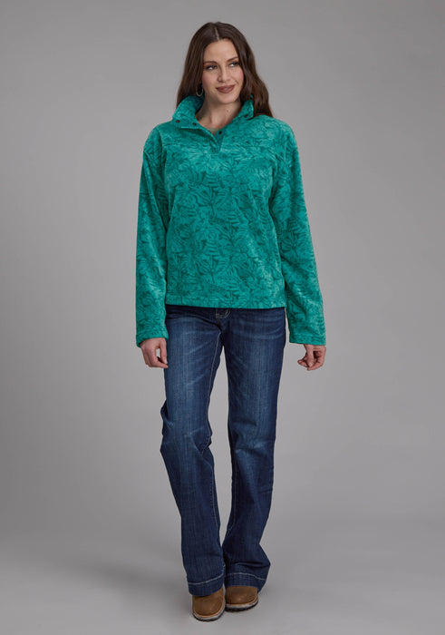 Women's Printed Micro Fleece Pullover * 100% Poly * Straight Front & Back Yokes * Nylon-Like Poly Center Placket W/Hidden Snaps * Stand Up Collar * Side Seam Pockets * Side Seam Slits On Hem