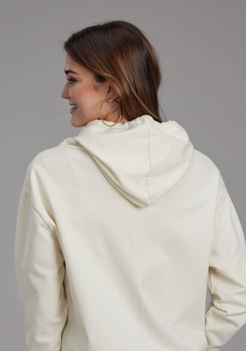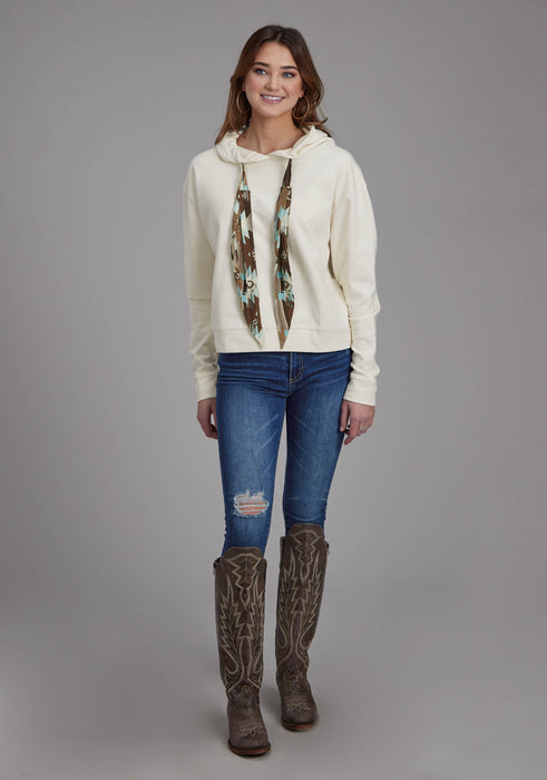 Women's Cream Cotton Fleece Hoodie * Long Sleeves * Printed Contrast Fabric Hood Ties * Self Cuffs And Waistband