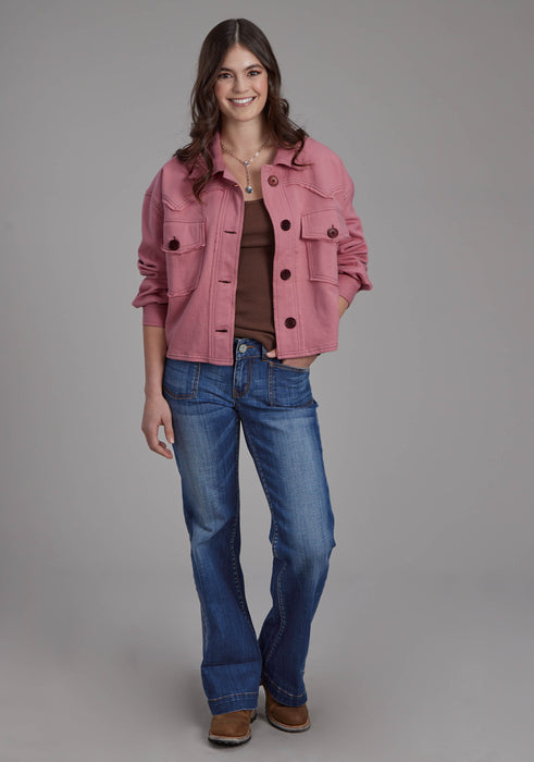 Women's Dusty Pink Cotton Fleece Long Sleeve Jacket * 1 Pt Front Yokes * Straight Back Yoke * Button Front * 1 Pt Pockets And Flaps * 1 Button Cuffs