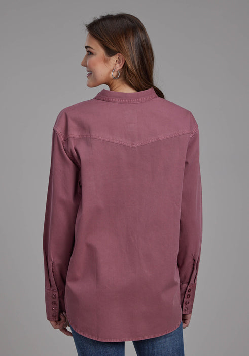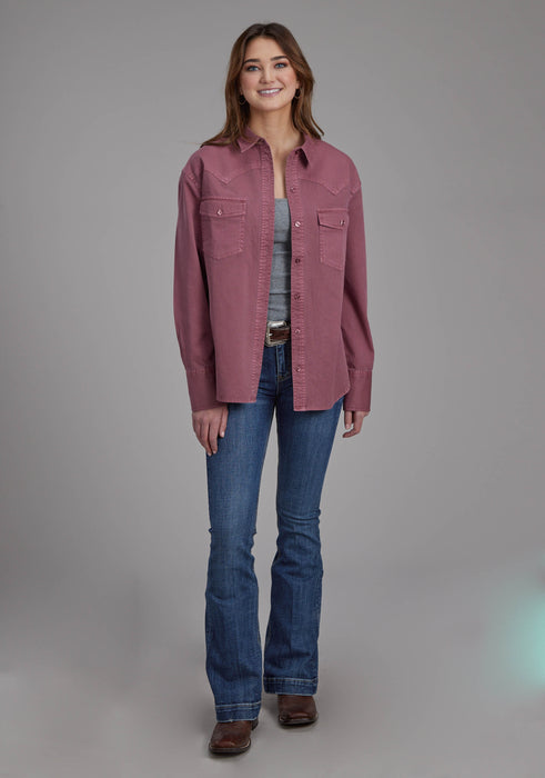 Women's Oversized Cotton Twill Western Shirt Jacket * Garment Dyed * Long Sleeve * 1 Pt Front And Back Yokes * 1 Point Pockets & Flaps * 4 Button Cuffs * Button Closure