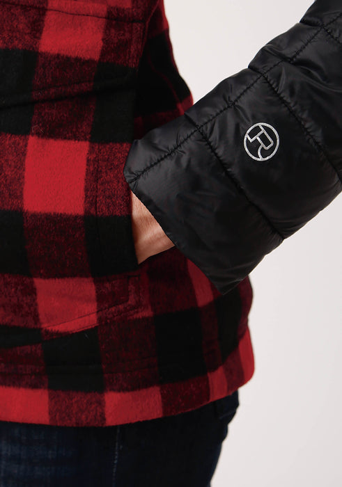 Women's Combo Jacket * Quilted Nylon Pieced W/Wool Blend Plaid * Poly Filled * Stand Up Collar * Zip Front W/Reflective Pull * Large Patch Pockets W/Snap Closure & Side Hand Entry * Back Body Princess Seams * Rounded Hem * Screened Logo