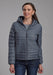 Women's Lt Weight Parachute Nylon Coat * Down Filled * Zip Front W/Reflective Pulls * Attached Hood W/Elastic Trim * Front & Back Princess Seams * Horizontal Quilt Lines * Welt Hand Pockets * Screen Printed Logo