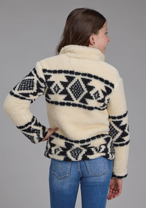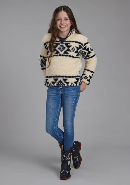 Girl's Fuzzy Polar Fleece Pullover * 1/4 Zip Front W/Antique Metal Zipper * Stand Up Collar * Side Seam Vents * Silver Reflective Ribbon W/Logo Pull