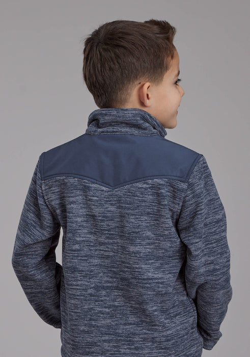 100% Poly Heathered Micro Fleece Pullover * Stand Up Collar * 1/4 Length Zip Front * Straight Front Yokes & 1 Pt Curved Bk Yoke Pieced W/Nylon * Reflective Zipper Pulls * Screen Printed Logo