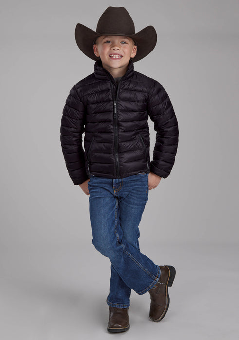 Boy's Lightweight Parachute Nylon Jacket * Poly Filled * Zip Front W/Reflective Zipper Pulls * Stand Up Collar * Zippered Hand Pockets * Self Fabric Lining * Reflective Zipper Pulls * Screen Printed Logo On Back Neck