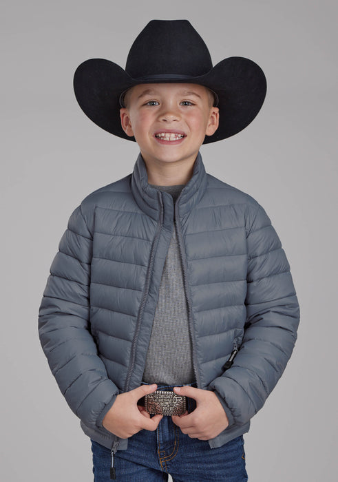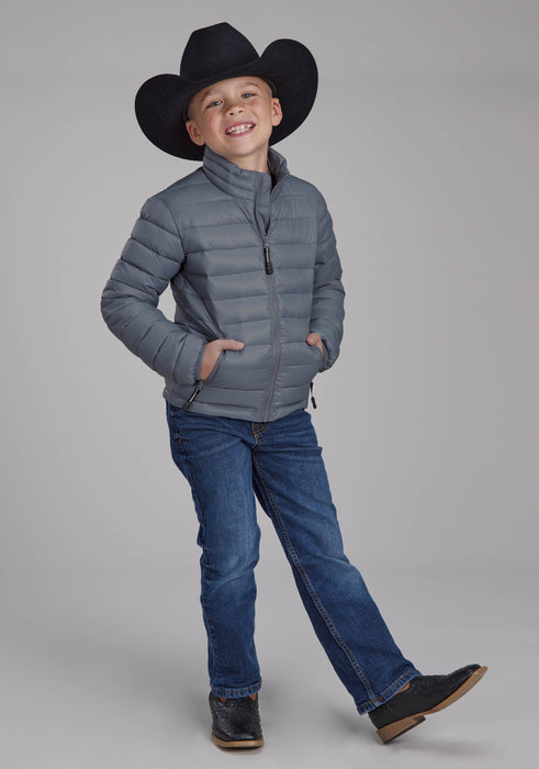 Boy's Lightweight Parachute Nylon Jacket * Poly Filled * Zip Front W/Reflective Zipper Pulls * Stand Up Collar * Zippered Hand Pockets * Self Fabric Lining * Reflective Zipper Pulls * Screen Printed Logo On Back Neck