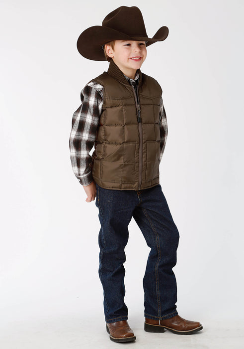 Boy's Price Point Poly Vest * Poly Filled * 1 Pt Front & Back Yokes Featuring Self Fabric Piping * Rib Knit Collar * Large Front Cargo Style Pockets * Window Pane Quilting Lines * Zip Front * Reflective Zipper Pulls * Embroidered Logo