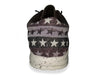 BROWN CANVAS WITH MULTI FABRIC HEEL