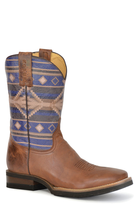 Men's Roper Waxy Tan Square Toe Boot w/ Purple Native Design