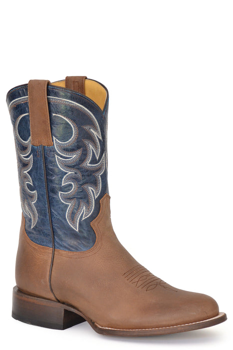 Men's Roper Waxy Tan Round Toe Boot w/ Marbled Blue Shaft