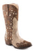 Vintage Tan Faux Leather * Vintage Creme Faux Leather Shaft Overlay * Shaft Overlay With Laser Cut-Out Design * 13 Inch Shaft * Snip Toe * Flexible Vintage TPR Outsole * Padded Comfort Insole *