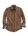 Guy's Y/D Plaid * 100% Cotton * 1 Pt. Front And Back Yokes * Select Bias Cut Pieces * Square Pockets * Flaps * Chambray Inside Trim * 3 Snap Cuff * Emb. Logo * Khaki Verigated Snap Front * Garment Washed