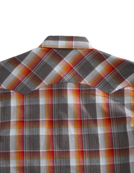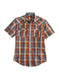 Men's Short Sleeve Western Style Shirt * 2 Pt Curved Bk Yoke * Select Bias Cut Pieces * Chambray Inside Trim * Emb. Logo * Rust Opaque Snap Front * Garment Washed