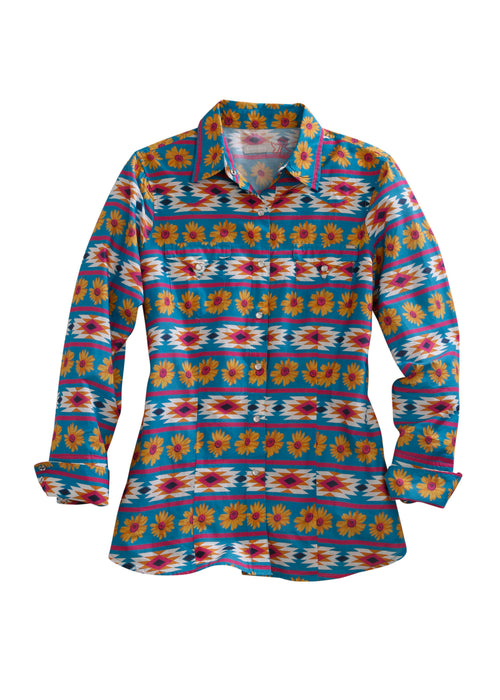 Ladies Long Slv Western Shirt * 1 Pt Curved Bk Yoke * Shaped 1 Pt Curved Pockets & Flaps * Metal Logo Tag * Cream Pearl Snaps * 5 Snap Cuff * Waist Darts * Garment Washed