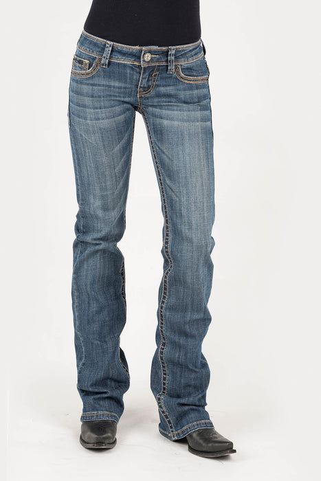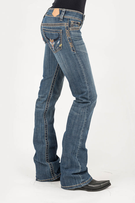 Dolly Fit TH Gals Jean * The Celebrity Jean * Sits Low On The Waist * Slim Through Hip & Thigh W/Bootcut Leg Opening * Contrast Top Stitching and Hip Side Seam Embroidery * Decorative Colorful Arrow and Skull Embroidery on Back Pocket